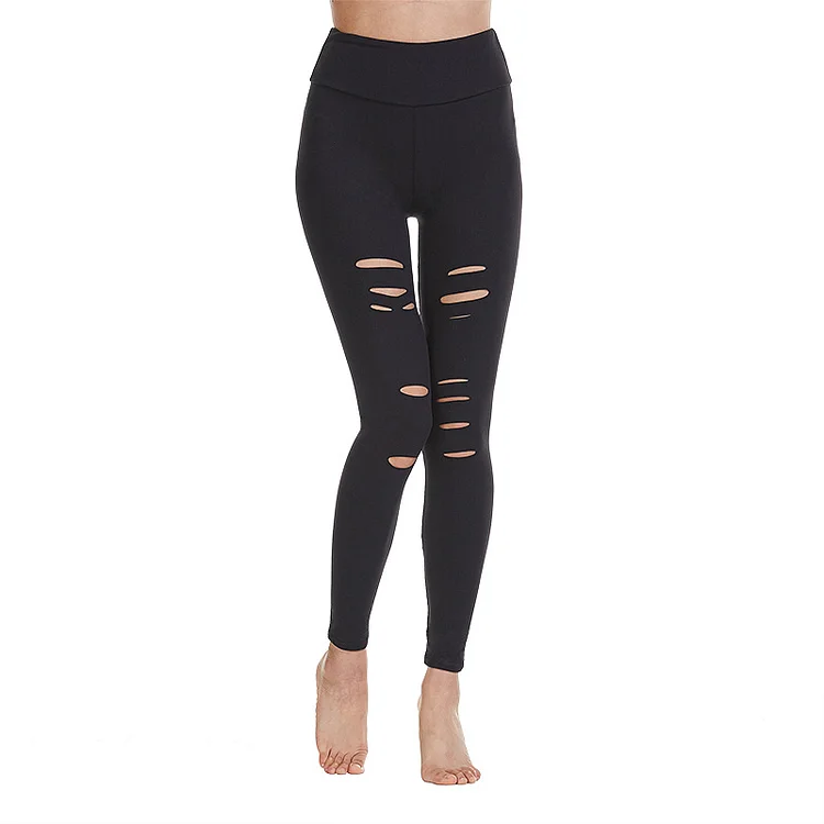 Cross-border Hot Sale European and American Hollow-out Hole High Waist Fitness Pants plus size Women's Hip Base Sports Tight Yoga Pants